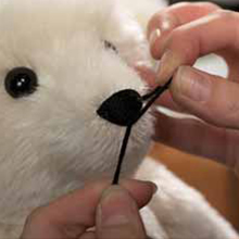 シュタイフ社の製品は、モヘア、アルパカなどの高品質な自然素材や、安全性・耐久性に優れた新素材を使用します。選ばれた素材は毛並みに忠実に、パターンに合わせて裁断され、職人たちの手によって縫製されます。縫い上げられたぬいぐるみには、綿や木毛、ポリエステルといった、製品に適した中身が詰められ、丁寧に形づくられていきます。