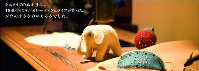 1880年12月、マルガレーテは、甥や姪たちのクリスマスプレゼントに、ゾウをモチーフにしたおもちゃを贈ることにしました。素材にはフェルト、中身には最上の羊毛をつめこんだやわらかなゾウのおもちゃは、子どもたちにはおもちゃとして、大人の女性には針刺しとしてプレゼントされ、好評を得ました。これが世界で初めてのぬいぐるみ玩具の誕生です。ぬいぐるみづくりのきっかけとなったこの1880年が、シュタイフの創業の年とされています。1897年から事業を手伝ってきたマルガレーテの甥リチャードは、「本物のようなクマのぬいぐるみ」の製作をマルガレーテに提案。これが世界で最初のテディベアと呼ばれる『55PB』です。55はベアのサイズ、Pは「Plüsch(ドイツ語でぬいぐるみ)」、Bは「Beweglich(ドイツ語で可動式)」という意味から名づけられました。こうして、首と手足が動き、素材も最高級のものを使った上品なぬいぐるみが誕生しました。