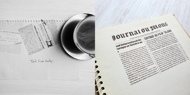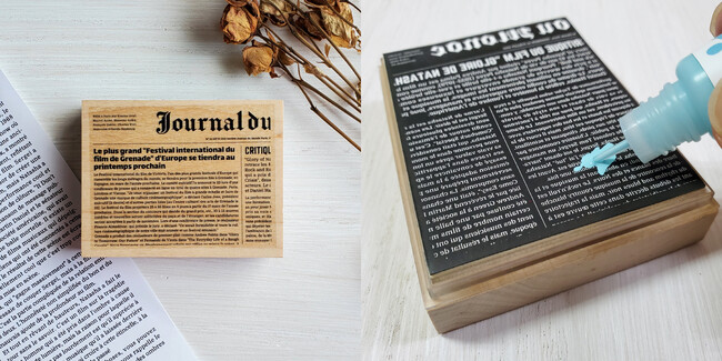 おしゃれなアンティーク調、フランス語のニュースペーパースタンプ。