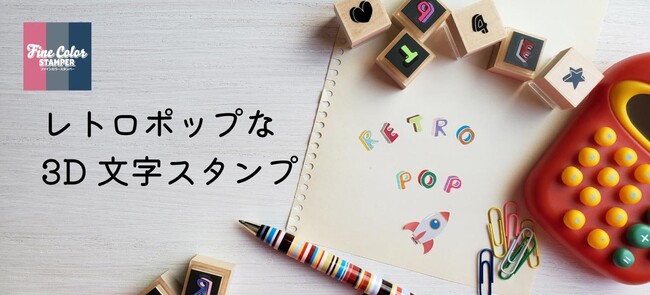 インクの色を塗り分けたり色替えしたりできるファインカラースタンパーだからこそできたデザイン、レトロポップな3D文字スタンプ!