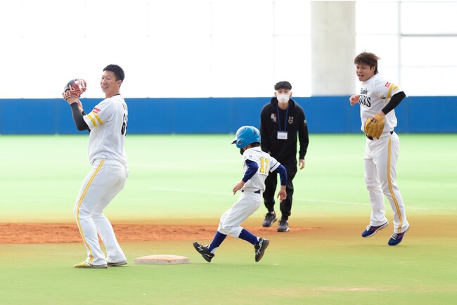 プロ野球選手と共に練習・対戦をした子どもたちは「一緒に試合ができて、すごくいい経験になりました」「体が大きくて迫力があるし、スイングスピードも速くて驚きました」「すごく楽しかったです」と笑顔で話してくれました。