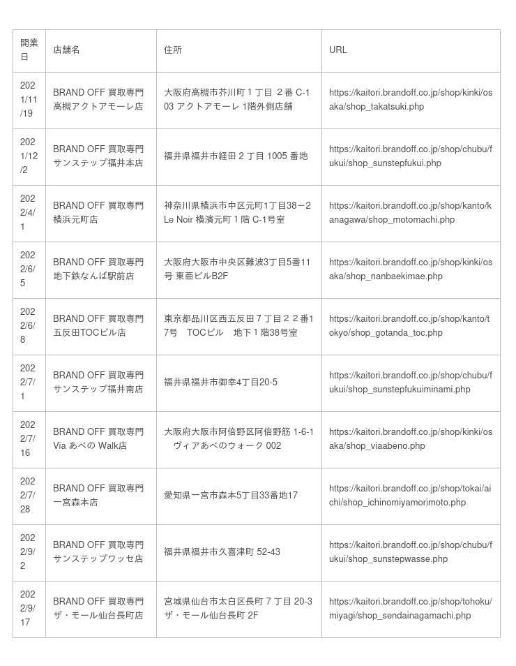 株式会社K-ブランドオフは、昨年3月からスタートしているFC事業において、FC10店舗目となる「BRAND OFF 買取専門 ザ・モール仙台長町店(宮城県 仙台市)」にオープンする。