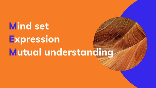 MEMとは、”Mind set(自己認知)” “Expression(自己表現)” ”Mutual understanding(相互理解)”の頭文字をとっています。