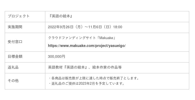 『英語の絵本』クラウドファンディング概要