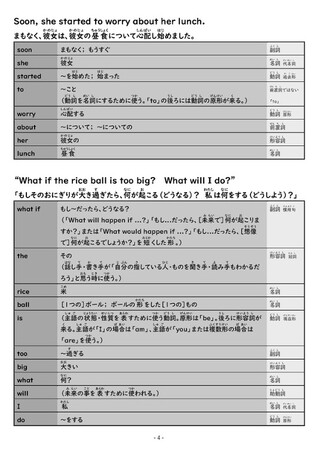 日本の英語検定試験に合わせた単語と文法を使って特別に翻訳したもの。