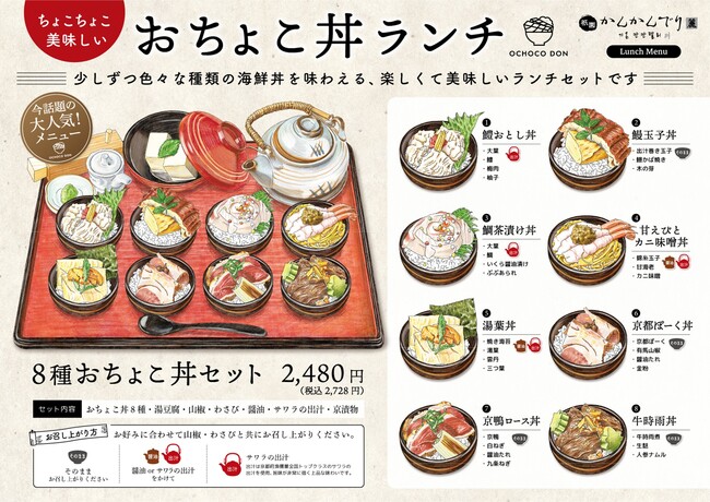 株式会社港project (代表:松浦 甲子郎 本社:兵庫県加東市)は、京都市内の自社直営飲食店『祇園 かんかんでり 麗』(京都市東山区)にて、2023年6月24日(土)より、東京・渋谷で平日でも行列が出来る女性に高い人気を誇る『おちょこ丼』の提供を開始致します。少しずつ色んな種類の丼が楽しめると女性に人気の『おちょこ丼』を、京都を感じられるような京食材などを使ったラインナップ構成により、観光客の方にも楽しんで頂けるようなバズランチを目指します。