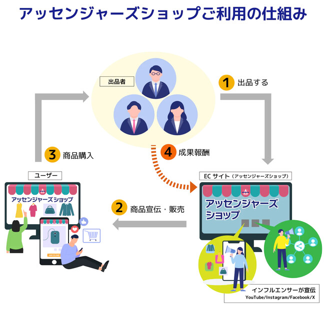 SNSインフルエンサーが出品商品を自身のフォロワーに効果的に宣伝して販売支援を行います。