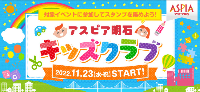 2022年11月から「アスピア明石キッズクラブ」をスタートさせ、「遊び」「学び」「成長」が体験できるイベントを多数企画・実施しております。対象イベント参加でスタンプを15個集めるとアスピア明石お買い物券300円分をプレゼント致します。また対象店舗で会員カードをご提示で様々な特典が受けられます。