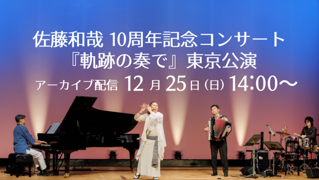 篠笛奏者 佐藤和哉の活動10周年を記念して開催したコンサート『軌跡の奏で』。京都・福岡・東京の3公演の中から、感動のファイナルステージとなった東京公演をオンラインにてアーカイブ配信いたします。