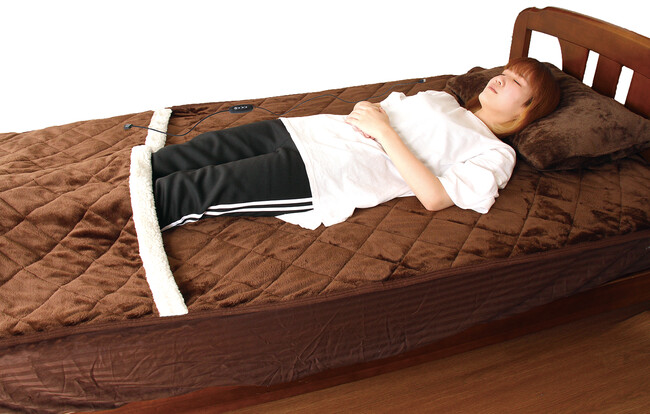 そのままでも暖かい高級毛布のようなフランネル生地を使用し足元のポケット裏側にはさらに暖かいシープ調ボア生地を貼り付けその中に熱伝導性の高いカーボンナノチューブ素材を使用した発熱シートを内臓しました。コード式温度調節コントローラーにより寝ながらワンプッシュ毎に三段階の温度調節が可能であり、また切り忘れによる低温やけどを防ぐため3時間自動停止機能を搭載しております。一度暖まったボア生地は体温効果もあり電源が切れても暖かさをキープしますので電気もあまり消費しません。今年の冬の電気料金の高騰には最適かと自信をもっております。洗濯はコントローラーコードをぬいていただきネットにいれて丸洗いしてください。