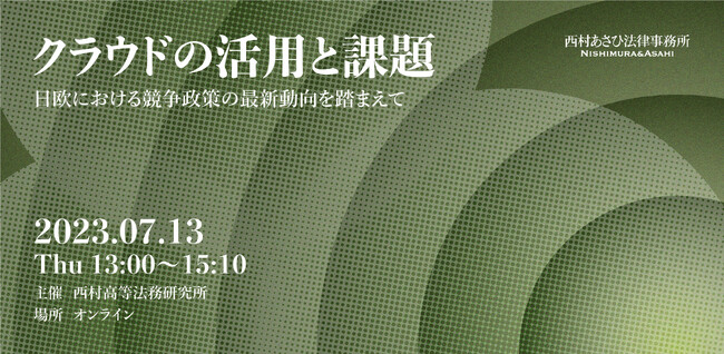 西村あさひ法律事務所により設立された研究機関である西村高等法務研究所は、「クラウドの活用と課題~日欧における競争政策の最新動向を踏まえて~」を、2023年7月13日(木)に開催致します。