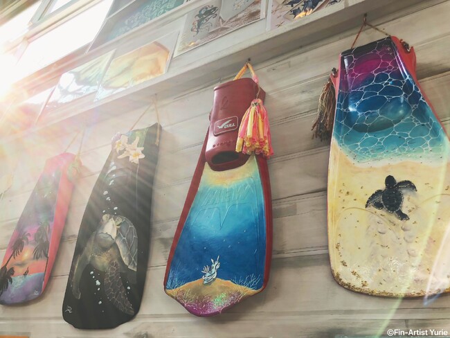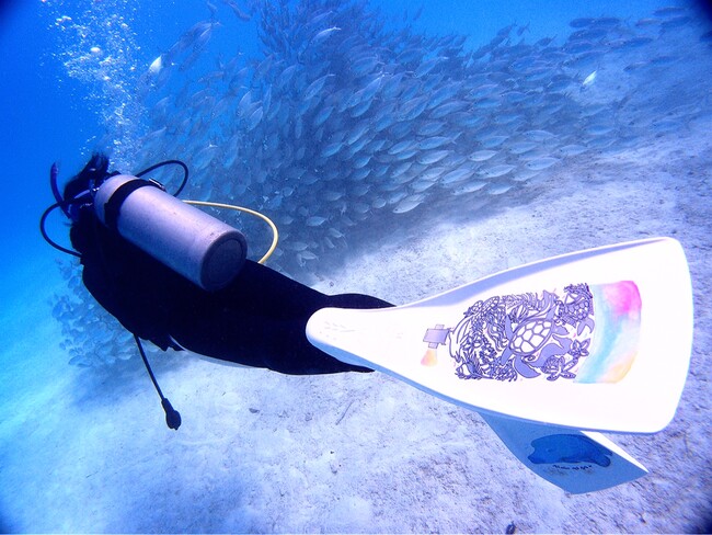 海で泳ぐためのフィン(足ヒレ)に絵を描いた、新ジャンルのフィンアート。