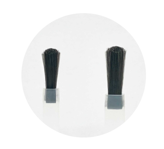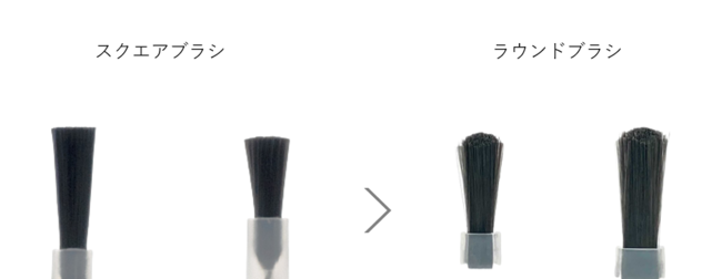 スクエア型マニキュアブラシは、爪の根元の角をきれいに塗るには少し工夫が必要でしたが、ラウンド型は真っ直ぐにストロークするだけで、より簡単キレイに塗ることができます。またサイズもS・Mと変わらず選ぶことができますので、お客様のお爪の大きさにあったブラシでストレスフリーに塗ることができます。