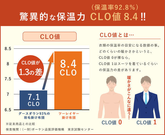 画面上では暖かさの比較が難しいと思いますので、暖かさを比較するには、保温力(CLO値)で比較していただきたいです。