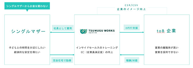 「Tsumugu Works(つむぐワークス)」のビジネルモデル ~シングルマザーの働き方+営業人材問題の改善~