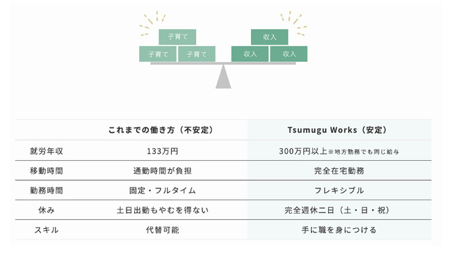 「Tsumugu Works(つむぐワークス)」では、ひとり親世帯のくらしに真正面から向き合い、シングルマザーの新しい働き方やモデルケースを発信していきます。