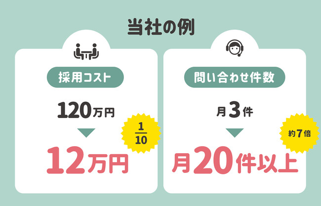 業務委託のママさんを有効活用することで、採用コストは1人あたり120万円から12万円まで下がり、新規の問い合わせ件数を月3件から20件以上まで上昇させることができました。
