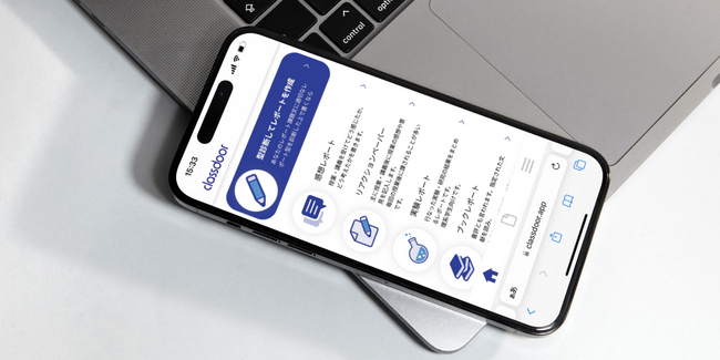 今回のアップデートは、約8割のユーザーがスマートフォンから本アプリにログインしているというユーザー調査を考慮し、現存のPC環境を主としているUIを、スマートフォン版に大幅に改善したものとなっています。これまでほとんどの機能がPC版でしか利用できませんでしたが、アップデートにより「classdoor」のメイン機能である型診断レポート機能や、シチュエーションごとに対応する感想レポート機能や実験レポート機能なども、スマートフォンから利用可能になりました。スマホブラウザ版「classdoor」では一覧性も向上しており、PC版と遜色ないレベルで、ストレスなくレポートを作成することを可能にしています。