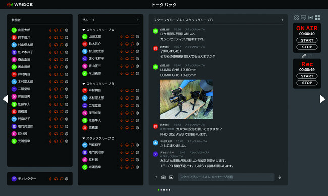 サーバにアップされた音声をトークバックに設定すれば、グループ分けしたチームごとに会話ができます。またチーム内でのテキストチャットも可能です。