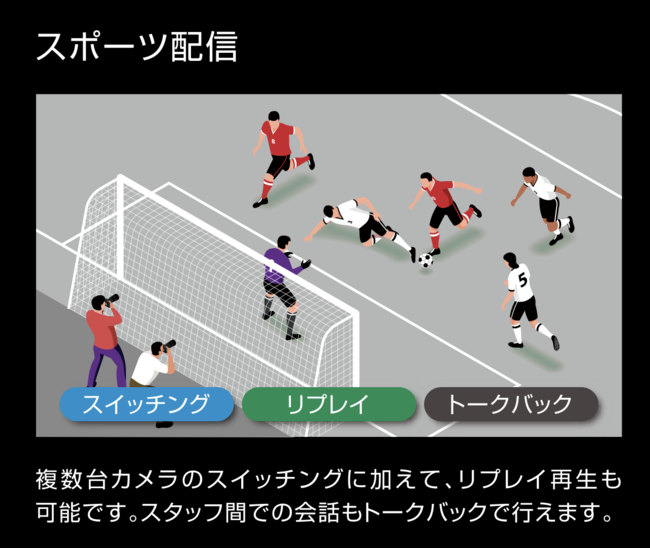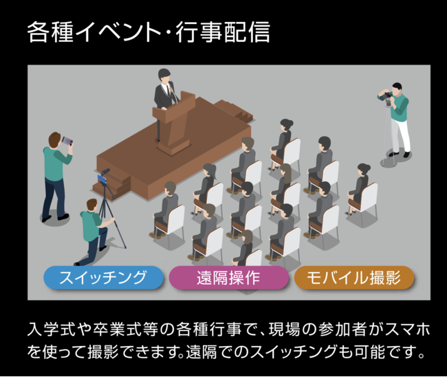 クラウド上でスイッチングを行うので、撮影現場から遠く離れた場所からもスイッチングが可能です。
