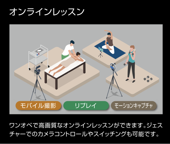 モーションキャプチャを利用し、出演者の特定の動作によるスイッチングが可能です。ワンオペなどスタッフが限られている場合に便利です。