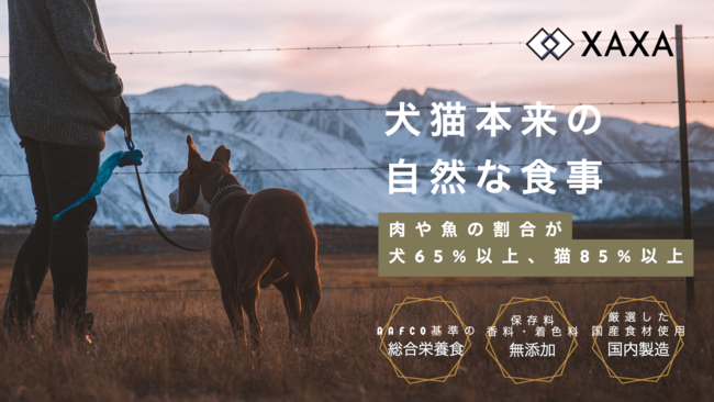 「ペットと人の理想郷の実現に向けて。」をスローガンにペット関連商品の企画・販売を手掛ける株式会社XAXA (本社:長野県松本市、以下「XAXA」)は、2022年11月11日(金)より、高級ペットフードブランド『XAXA PREMIUM PET FOOD』のドッグフード、キャットフード全8種類を、応援購入サービスMakuake(マクアケ)にて先行販売いたします。本プロジェクトは12月30日まで実施しています。