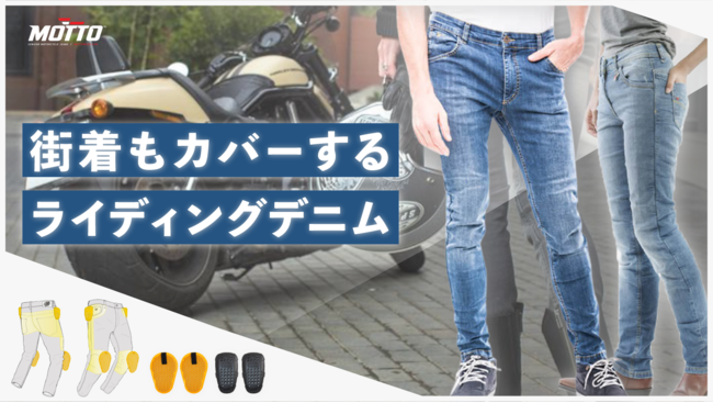 バイク用ウェアには見えない見た目ながら万一の転倒に備えてライダーの下半身を強力に保護