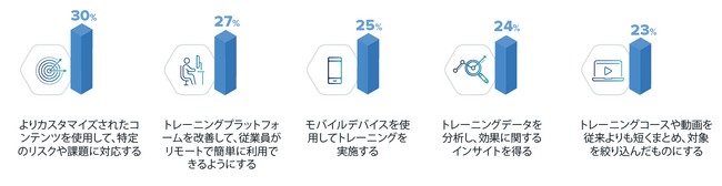 日本のプログラムでは、社内システムなどの要因が、プログラムの有効性や効果の向上を妨げていると報告されています。また社内システムの強化の必要性とともに、日本のプログラムにおけるトレーニング改善の優先事項として、トレーニングプラットフォームの強化や特定のリスクに対応するカスタムコンテンツの充実があげられました。