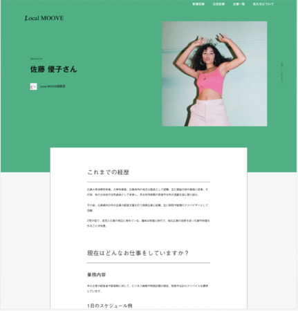 「Local MOOVE」は地域にあるユニークで魅力的な会社とそこで働く若手社員のインタビュー記事を掲載し、地域で働くことを考える若手ビジネスマン向けに、地域のキャリアを詳細に見える化した情報を提供します。