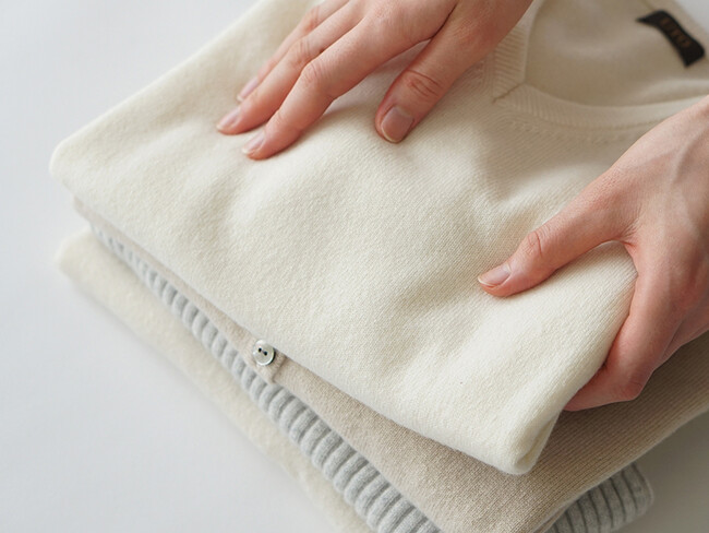 ・通常より詰めて編み、洗濯し着込むほど風合いが増し、3年後に最高になる「育てるカシミヤ」