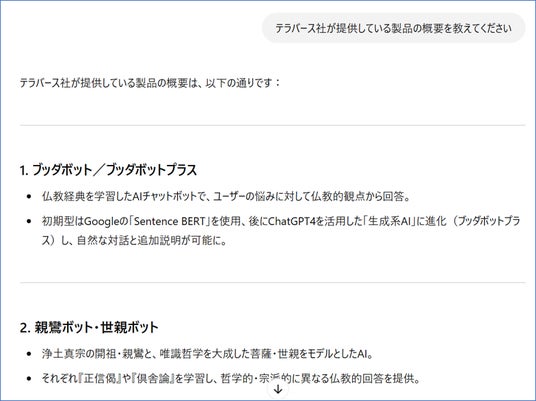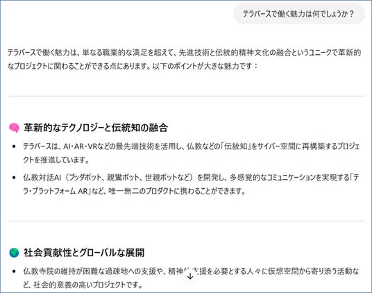 株式会社テラバース(所在地: 京都府京都市、代表取締役: 古屋俊和)は、京都大学やブータン政府と共同で、ブッダや聖者の思想を機械学習し、生成系AIと融合したチャットボット「ブッダボット」を開発し、仏教界に導入してきました。
