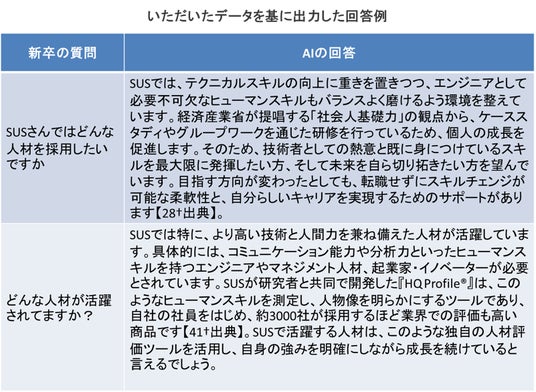 - 社員(インターン)リクルート用のAIとして利用が可能