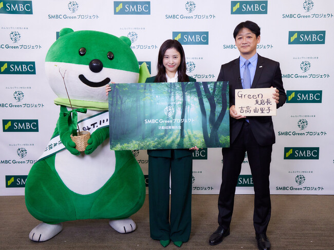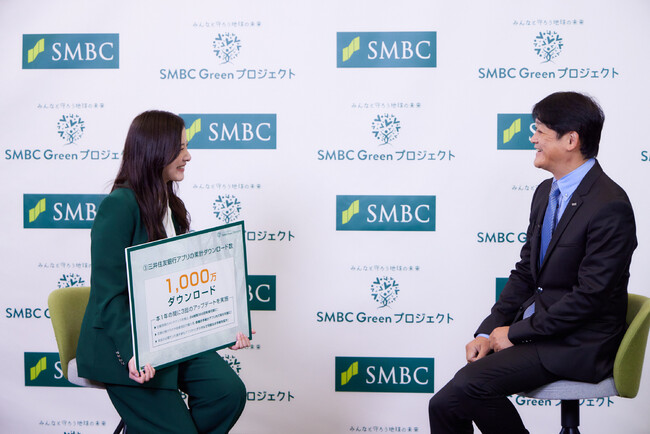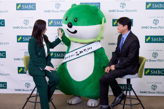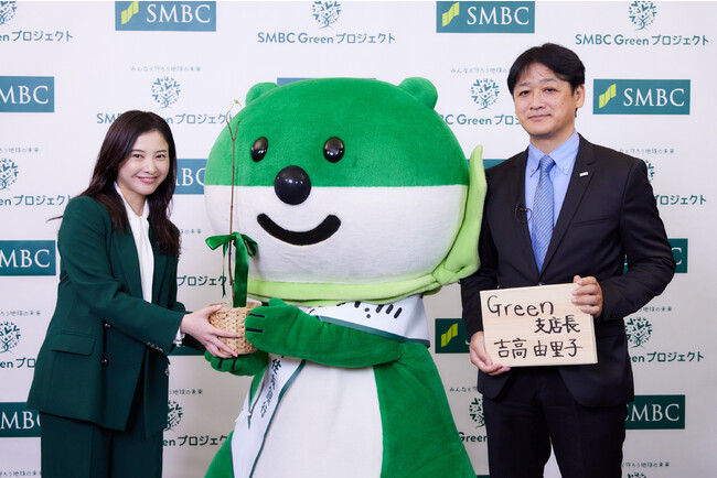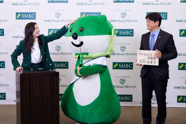 株式会社三井住友銀行(以下、SMBC)は、2021年9月よりスタートした、デジタル利用や推進等の取り組みを通じてお客さまとともに環境負荷軽減へ取り組むことを目指す「SMBC Greenプロジェクト」の1年間の成果を振り返る成果報告会を、2022年11月30日(水)に実施しました。ゲストにはGreen支店長の吉高由里子さんをお迎えし、三井住友銀行 専務執行役員の山下剛史とともに本プロジェクトのこれまでの取り組みや1年間の成果について発表しました。