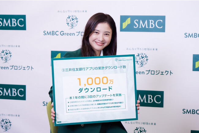 次に、三井住友銀行アプリの累計ダウンロード数が1,000万ダウンロードを突破したことが発表されました。それを聞いた吉高さんは「日本の人口の約10人に1人が利用しているということですよね?たくさん銀行がある中で、三井住友銀行を選んでいただきまして、とてもありがたいです!」と支店長らしいコメントを述べました。