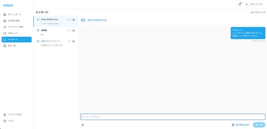 交渉(チャット)交渉画面において、広告主とチャットで交渉が可能です。