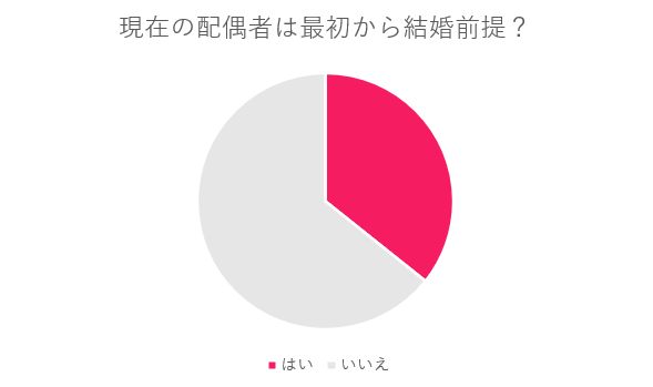 出会いの時点で結婚前提でしたか? という問いに対し、元パートナーとの出会いでは18%が「はい」だったのに対して、現在の配偶者との結婚前提の出会いは36%が「はい」となっています。
