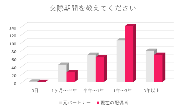 元パートナー様と現在の配偶者様とでは、交際期間に関して、若干の違いが見て取れました。