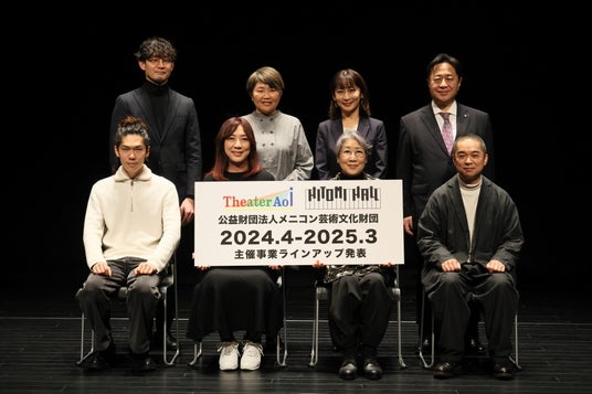 開館2年目の「メニコン シアターAoi」、2012 年オープン「HITOMI ホール」の2024 年度主催事業ラインアップ発表会見に山口茜、青木敦子、泉宗良、上羽貴大、永井愛、横山拓也らが登壇