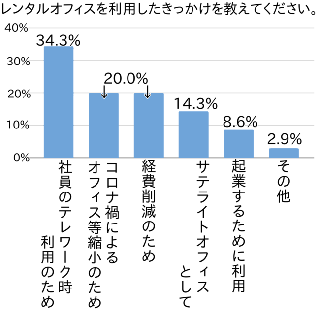 近年のレンタルオフィスの利用数増加が顕著な傾向が分かりましたが、その理由はなぜでしょうか。アンケートでは、レンタルオフィスを利用したきっかけについて尋ねました。