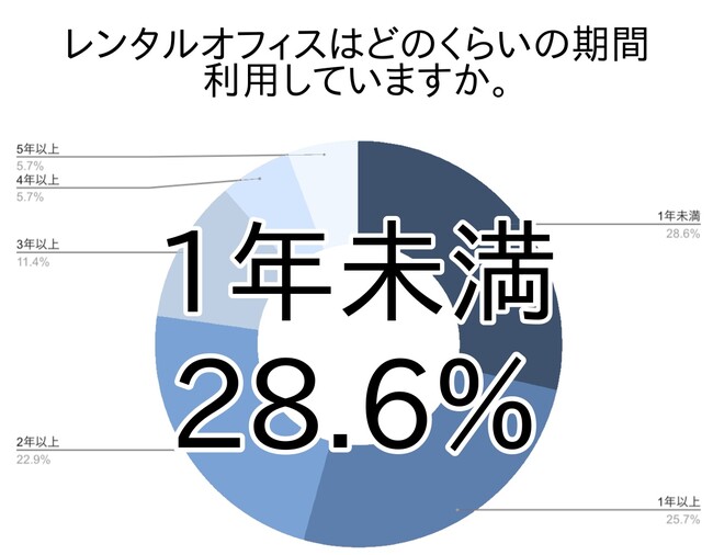 最も多かったのは1年未満で28.6%でした。4件中1件はここ1年でレンタルオフィスを利用し始めたことになります。