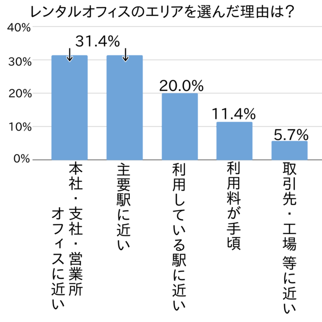 第1位にあがった理由は「本社・支社・営業所オフィスに近い(31.4%)」でした。類似した理由で「取引先・工場に近い(5.7%)」という意見もありました。