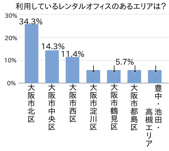 アンケートでは次に、利用しているレンタルオフィスが大阪のどのエリアに位置しているかを尋ねました。