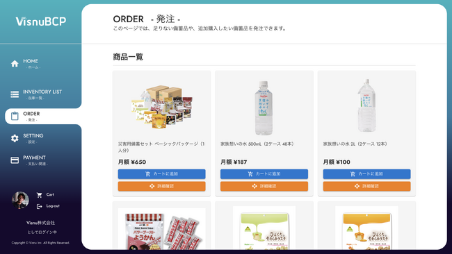 VisnuBCP(ヴィシュヌ・ビーシーピー)は、災害備蓄品の管理業務をクラウド連携で自動化し容易にすることが可能なサブスクリプション型のクラウドサービスです。