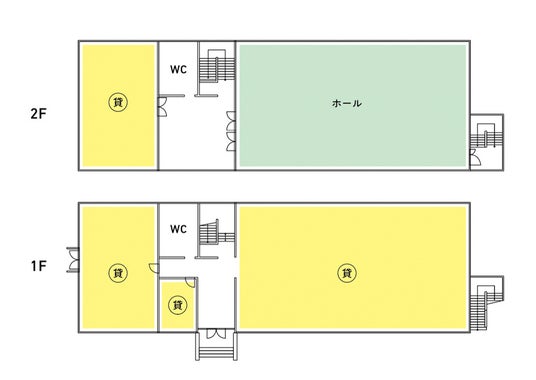 TOUAMACHI KAIKANフロアマップ(イメージ)1Fと2Fの西側には複数のショップが入居し、2Fの東側では様々なイベントを行うホールを運営します。ホールでは音楽ライブ、マルシェ、トークイベント、展示会などを行うほか、イベントスペースとして貸し出しを行い、地域内外の方が利用できるようになります。