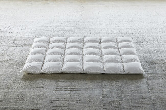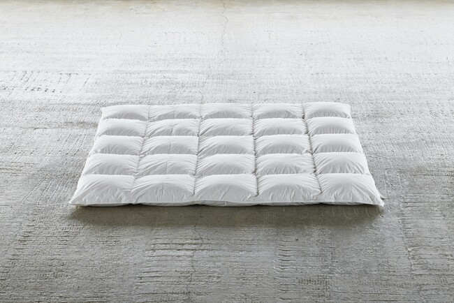 Upcycle Down Pillow 同様に、役目を終えた羽毛布団を回収して生まれ変わらせた「アップサイクルダウン」を使用。表面生地は柔らかくてタフな綿100%の二重構造になっています。