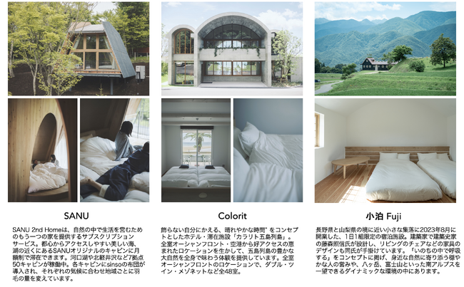 sinsoはこれまで、SANUやColorit、小泊Fuji などの宿泊施設に布団やリネン類を導入していただいてきました。さらに自社でも山梨県内にて宿泊施設を運営しており、それらの経験を通じていただいたお客様からのフィードバックを元に商品開発・改善を行っています。(導入事例は以下のとおり。)