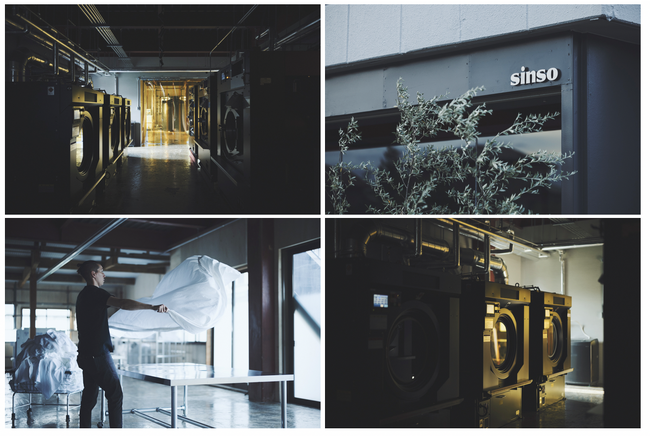 2022年に設立したクリーニング工場「sinso office & factory」では、クリーニングの全ての工程を全て工場内で精製したオゾン水を使って行っています。オゾン水は環境残渣の無い機能水とされ、抗菌作用に優れるため使用しなくてはならない洗濯洗剤の量を減らすほか、低温洗浄でも十分な洗浄効果が期待できます。地球と人に優しいブランドとして、このようなクリーニングの観点も大切にしています。