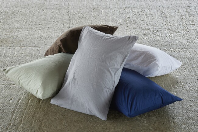 布団カバーやボックスシーツと同様に手触りのよい綿100%の枕カバー。洗いざらしの天然素材は使うほどに馴染み、より心地よい睡眠につながります。