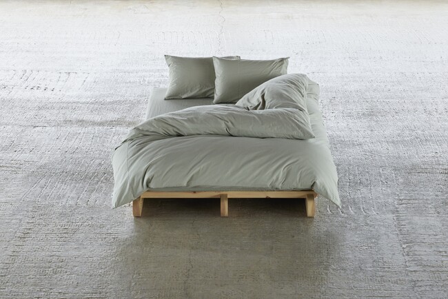当ブランドでは、布団の気持ちよさを最大限引き出すために、シーツとカバーは綿100%のみを扱い、かつ寝具業界としては非常識な “洗いざらし” でお届けすることをデフォルトとしています。肌に気持ちよく馴染むように、そして環境にもやさしい商品を提供するべく、糊付けしてアイロンをかけることをやめました。静電気が発生しにくいだけでなく、高品質な綿の質感が生まれることで擦れた音さえ心地良く、綿本来の良さが引き出されると考えています。