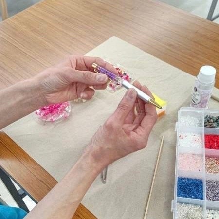 ボールペンに入れる材料は、ご利用者様と手作り。